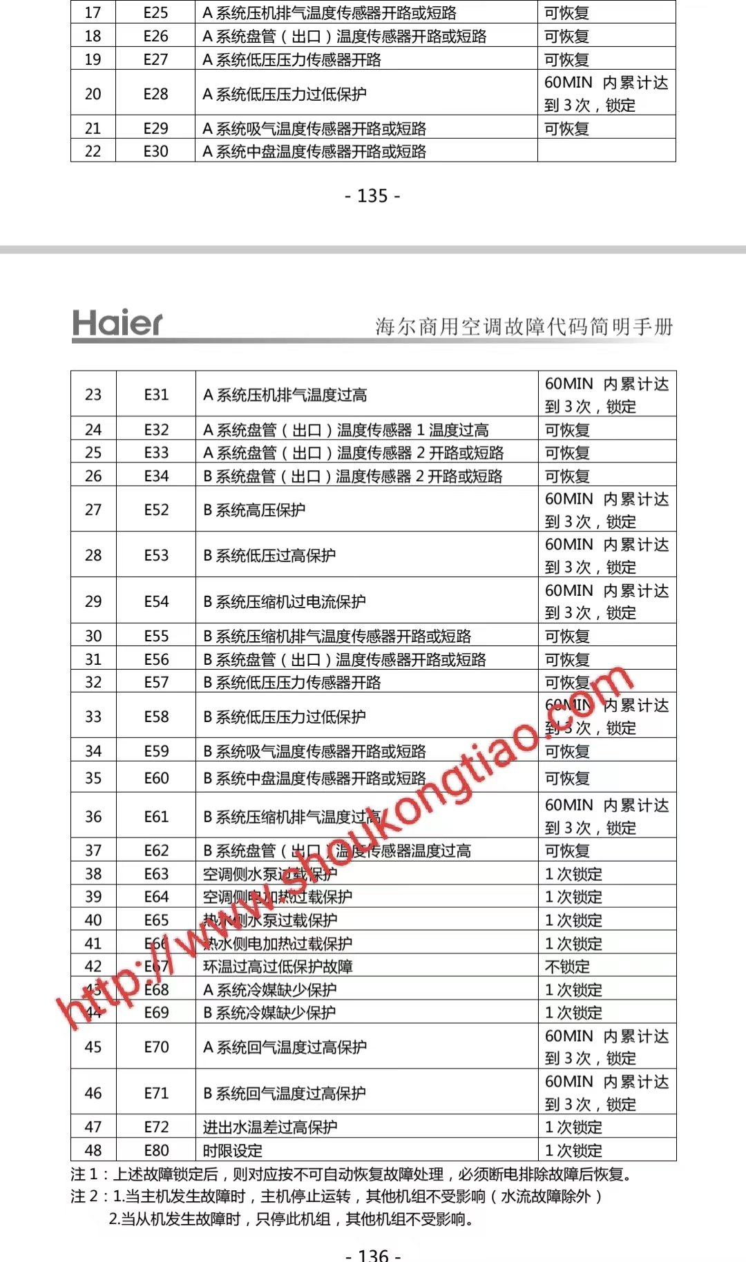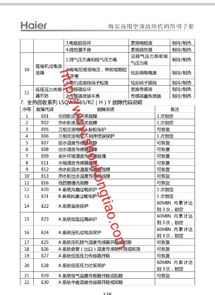 海尔LSQWRF65/75/130/150/160R2(HDY)系列商用中央空调,空气能,模块机故障代码手册