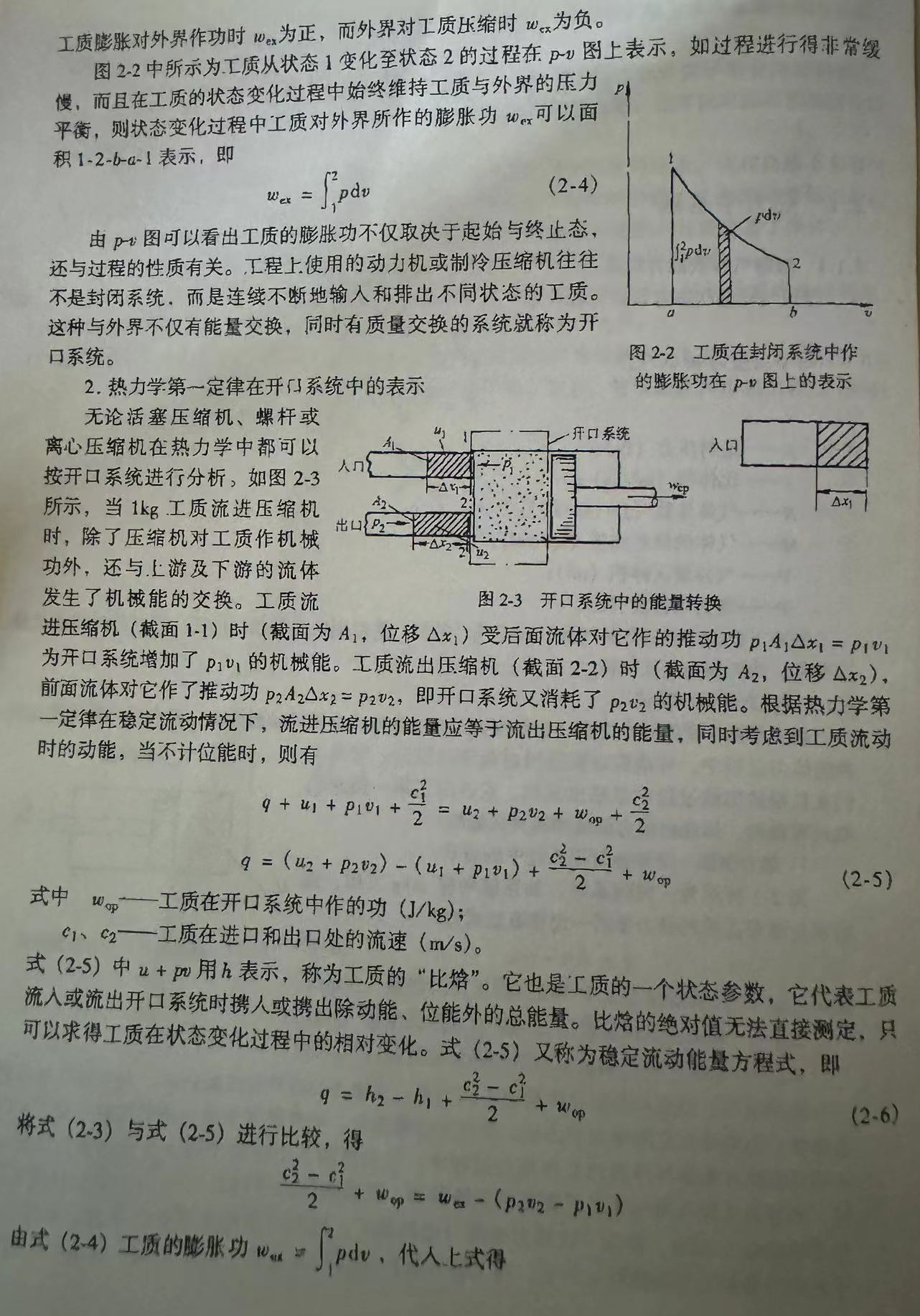 热力学能以u表示,称为“比热力学能(比内能)”,比热力学能也是状态参数。在式(2-3) 中规定外界对工质加热时q为正,而工质对外界放热时q为负,同样工质在状态变化过程中