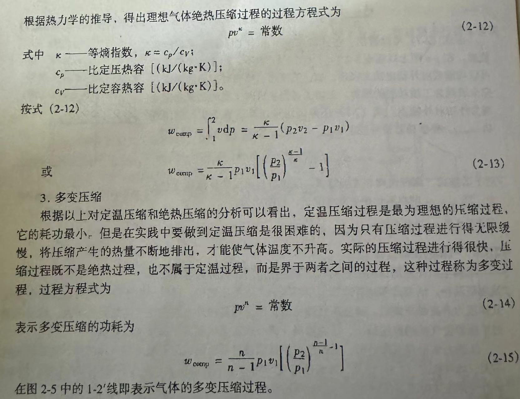 制冷工程中遇到的各种气体(如空气、氮气)及远离液态的相对低压、高温的氨或卤代烃蒸气等,均可视为理想气体。